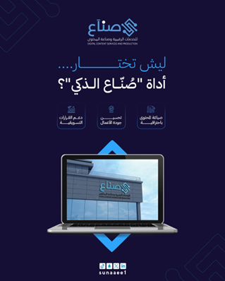 "صُنّاع" هي شركة سعودية وطنية تعمل على تمكين الاقتصاد الرقمي من خلال منصة ذكية تساهم في ربط صُنّاع المحتوى والمدربين، المستشارين، والمراكز التدريبية، بهدف تسويق برامجهم التعليمية والتدريبية بكفاءة عالية. توفر المنصة بيئة رقمية متكاملة تشمل خدمات في التحول الرقمي، الحلول التقنية، والذكاء الاصطناعي، وتُطلق من خلالها أداة "صُنّاع الذكي"، المصممة خصيصًا لدعم صُنّاع المحتوى في تحسين جودة أعمالهم وتسريع إنتاجهم باحترافية.